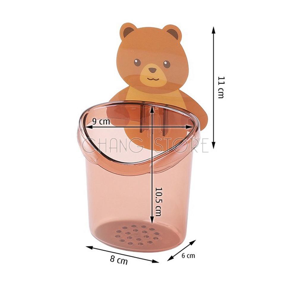 Ly cốc đựng bàn chải kem đánh răng dán tường hình gấu chất liệu nhựa cao cấp, độ bền cao