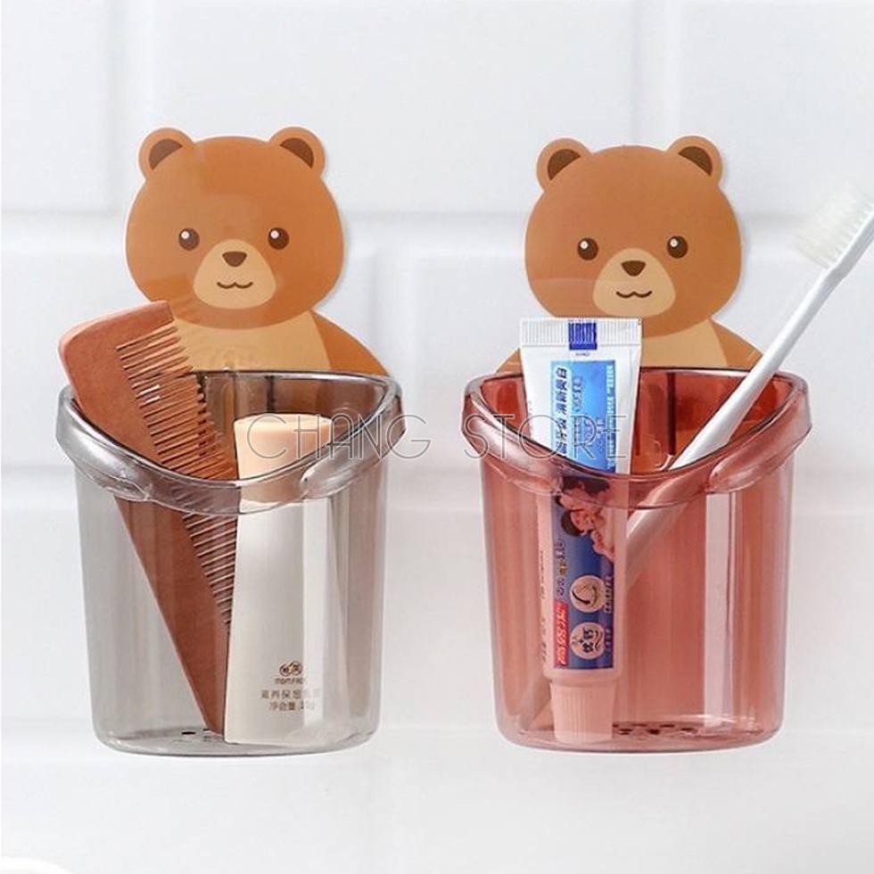 Nhà Cửa & Đời Sống > Đồ dùng phòng tắm > Giá, móc treo đồ nhà tắm || Ly cốc đựng bàn chải kem đánh răng dán tường hình gấu chất liệu nhựa cao cấp, độ bền caoCòn hàng