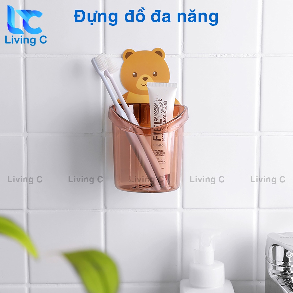 Nhà cửa & Đời sống > Đồ dùng phòng tắm > Kệ đựng bàn chải, kệ nhả kem đánh răng || Ly cốc đựng bàn chải kem đánh răng Living C, giá kệ đựng đồ treo tường nhà tắm đa năng hình GẤU CUTE _CGCCòn hàng