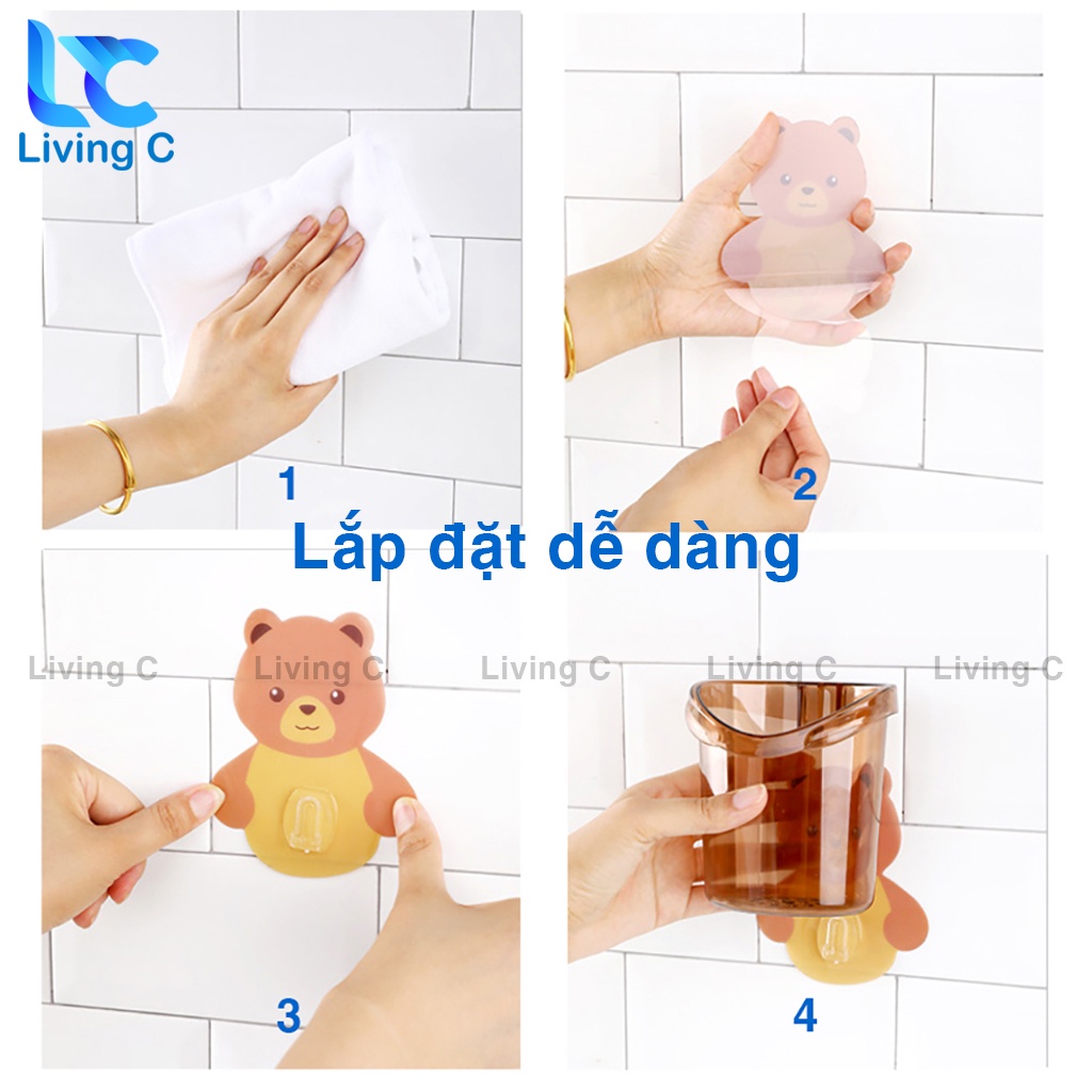 - Tên sản phẩm: Ly cốc đựng bàn chải kem đánh răng Living C, giá kệ đựng đồ treo tường nhà tắm đa năng hình GẤU CUTE _CGC