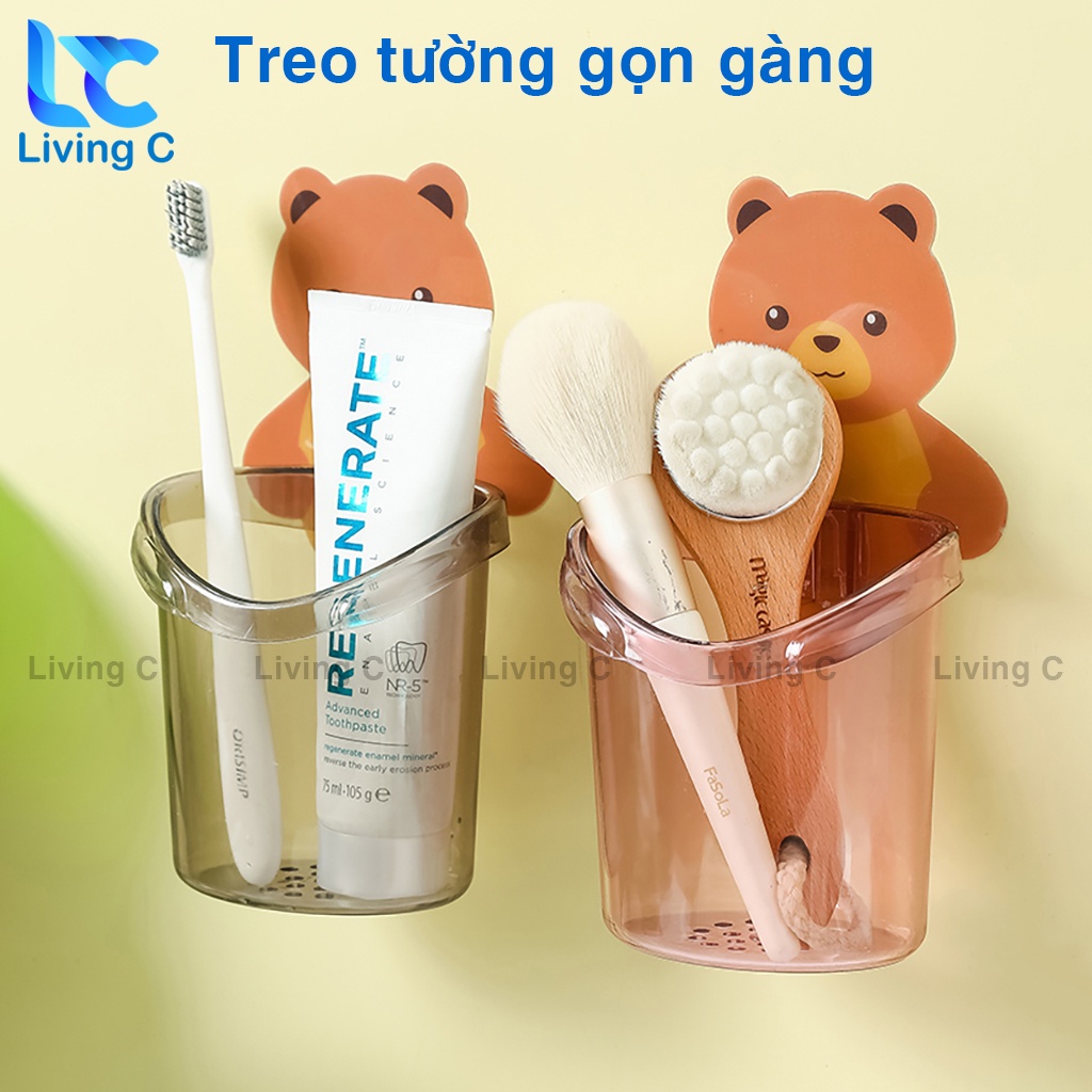 Giới thiệu Ly cốc đựng bàn chải kem đánh răng Living C, giá kệ đựng đồ treo tường nhà tắm đa năng hình GẤU CUTE _CGC