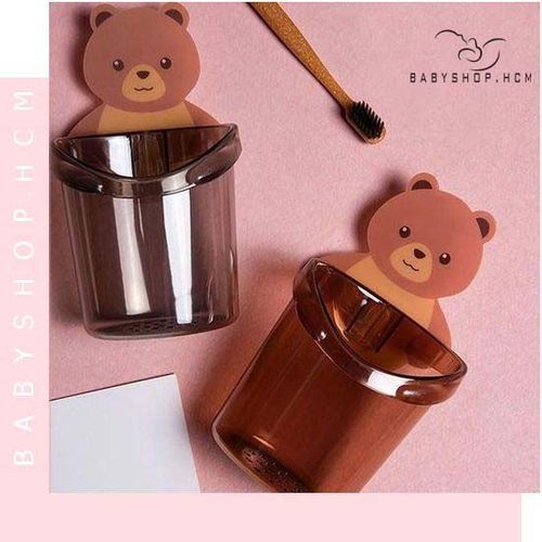 ly cốc gấu dán tường đựng bút viết, bàn chải đồ dùng đa năng