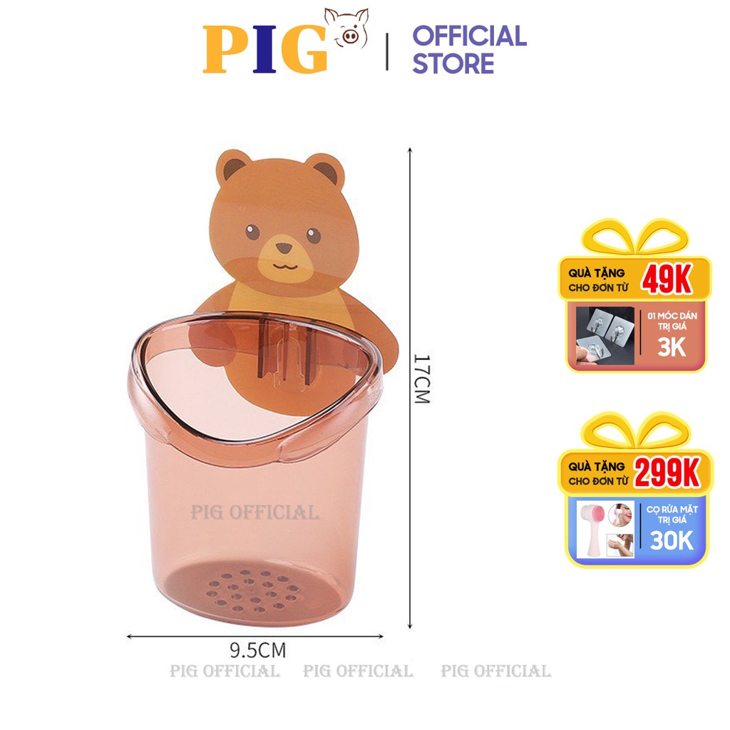 Ly cốc gấu nâu dán tường siêu bám dính đựng bàn chải đánh răng cute
