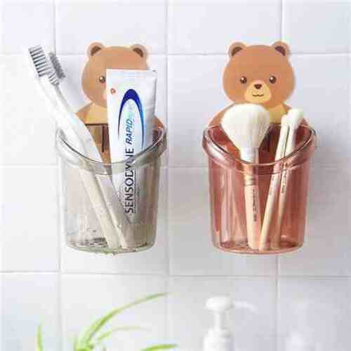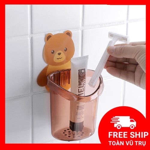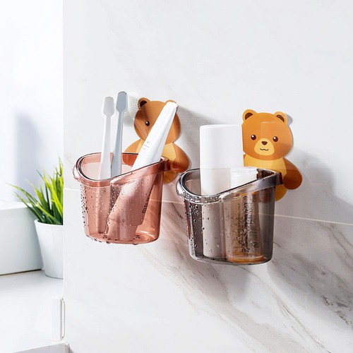 Nhà Cửa & Đời Sống > Đồ dùng phòng tắm > Phụ kiện nhà tắm, nhà vệ sinh || Ly cốc nhựa hình gấu dán tường nhà tắm dễ thương để bàn chải siêu dính có lỗ thoát nước bằng nhựa cao cấpCòn hàng