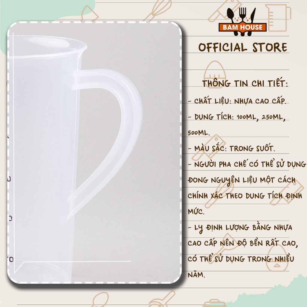 Nhà cửa & Đời sống > Dụng cụ nhà bếp > Dụng cụ đo lường || Ly đong nhựa định lượng pha chế loại lớn 100ml – 500ml Bam House cao cấp LDN01 – Gia dụng bếpCòn hàng