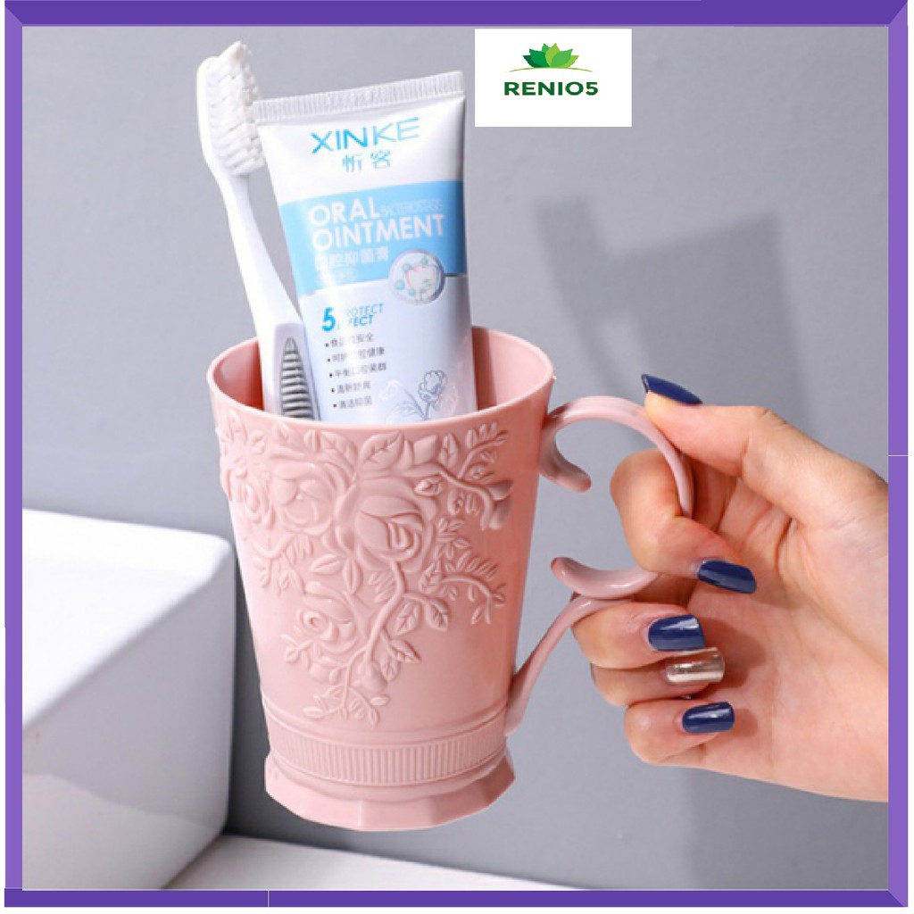 Ly Đựng Bàn Chải, Kem Đánh Răng Họa Tiết Hoa Hồng Dễ Thương Có Tay Cầm