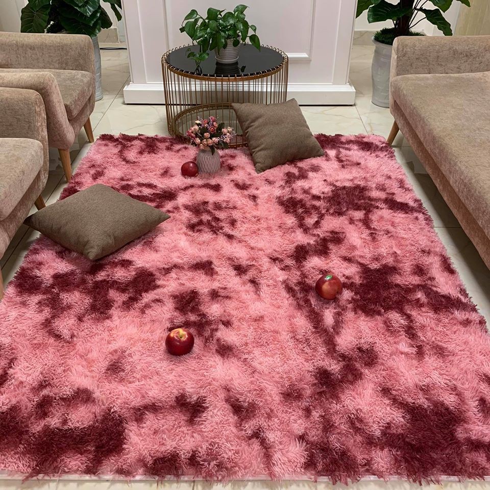 Thảm trải sàn lông xù trở nên đẹp hơn, khi nó được trải dưới bộ bàn ghế sofa trong phòng khách. Bởi vì diện tích phòng khách vừa phải, lại mật độ đi lại nhiều, khi ngồi trên sofa bạn đặt chân lên thảm bạn sẽ thấy ấm áp, mềm mại đến vô cùng.