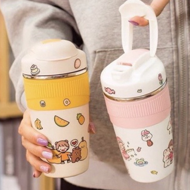 Nhà cửa & Đời sống > Bộ đồ bàn ăn > Bình nước & phụ kiện || Ly giữ nhiệt, bình nước giữ nhiệt cute 480ml có ống hút tặng kèm sticker dễ thươngCòn hàng