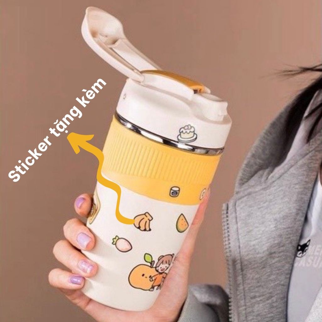 Ly giữ nhiệt, bình nước giữ nhiệt cute 480ml có ống hút tặng kèm sticker dễ thương