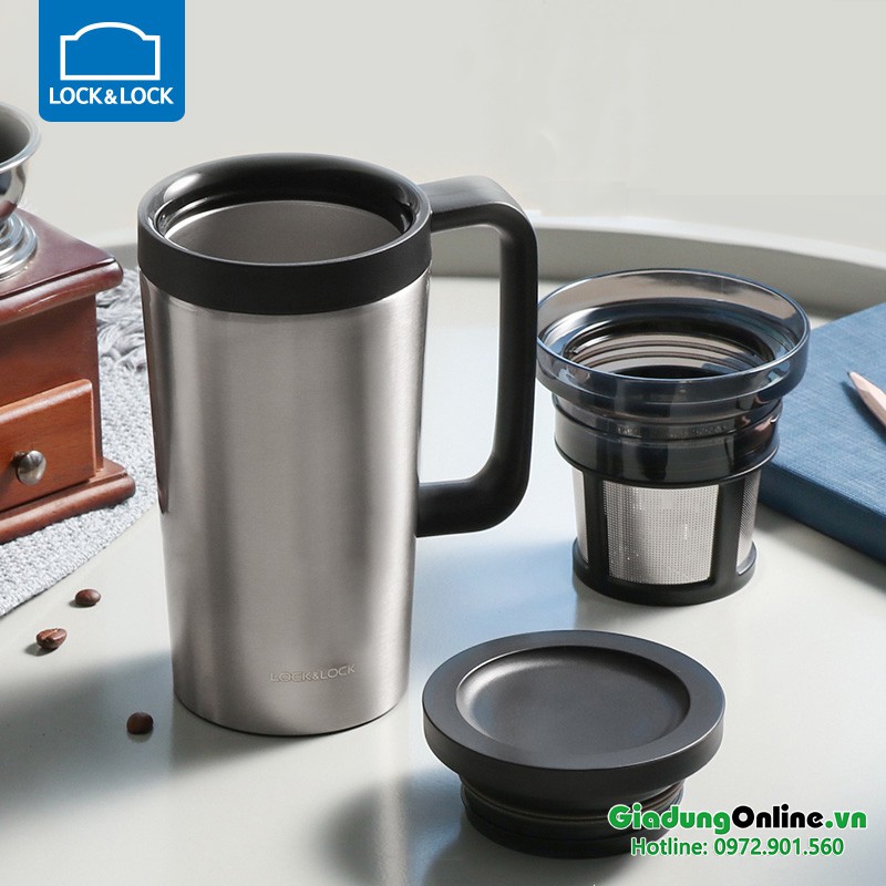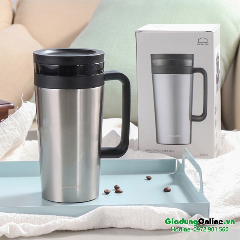 Ly Giữ Nhiệt Có Lọc inox Pha Cà Phê Lock&Lock Coffee Filter Mug LHC4197 580ml Màu Bạc- Thương hiệu: Chính hãng Lock&Lock