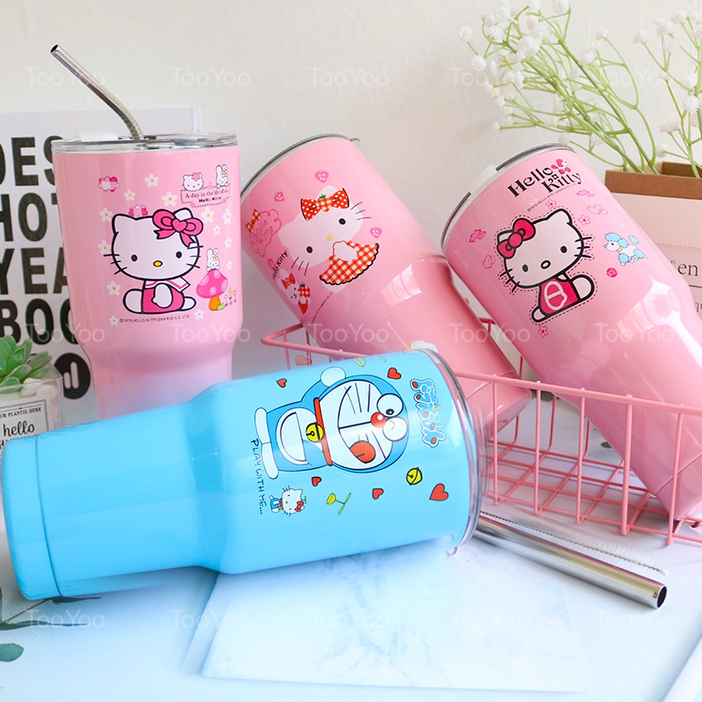 Ly giữ nhiệt DORAEMON HELLO KITTY dễ thương inox 304 an toàn tặng kèm bộ ống hút 4 món TY0025