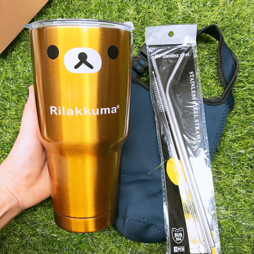 Ly giữ nhiệt Inox Thái Lan 900ml đủ phụ kiện túi đựng, ống hút, cọ rửa