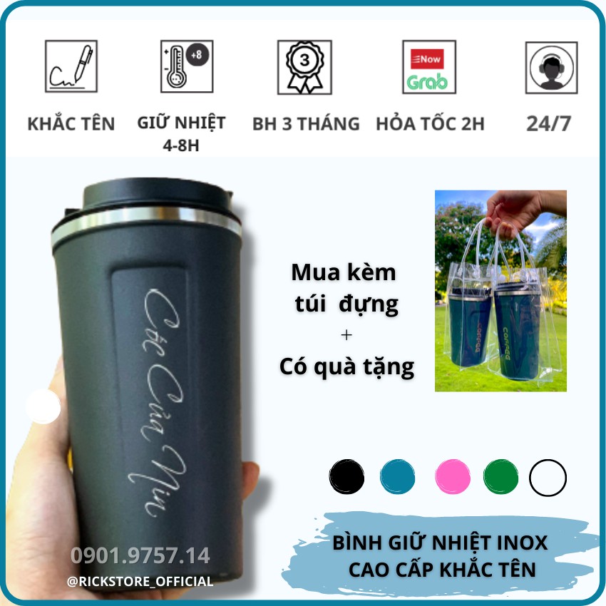 Ly Giữ Nhiệt Khắc Tên, Inox 304 Coffee Nhập Khẩu Coffee Holic, Giữ Nhiệt Cao Cấp Bảo Hành 6 Tháng - Rick Store