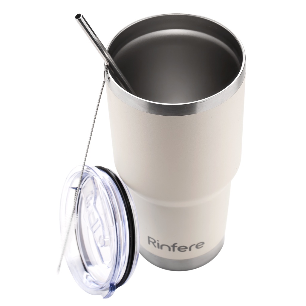 Ly Giữ Nhiệt Nắp Trượt Chống Tràn Rinfere - Tặng Kèm Ống Hút Không Gỉ, Dụng Cụ Vệ Sinh Ông Hút (900ml)
