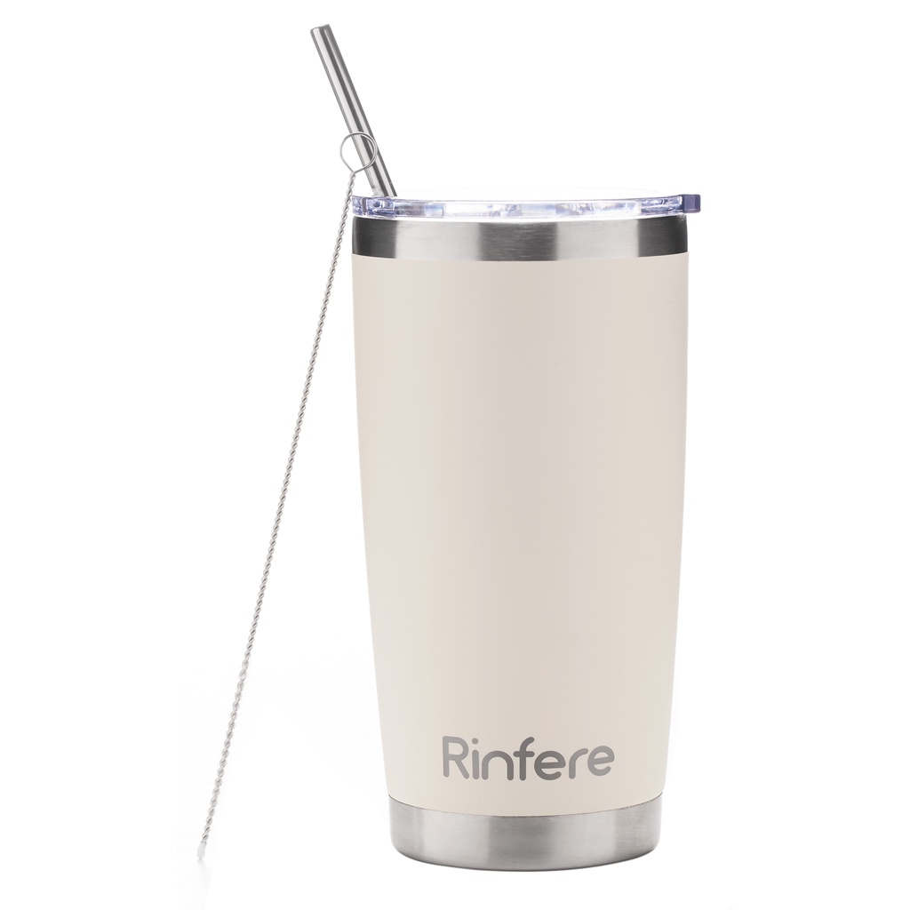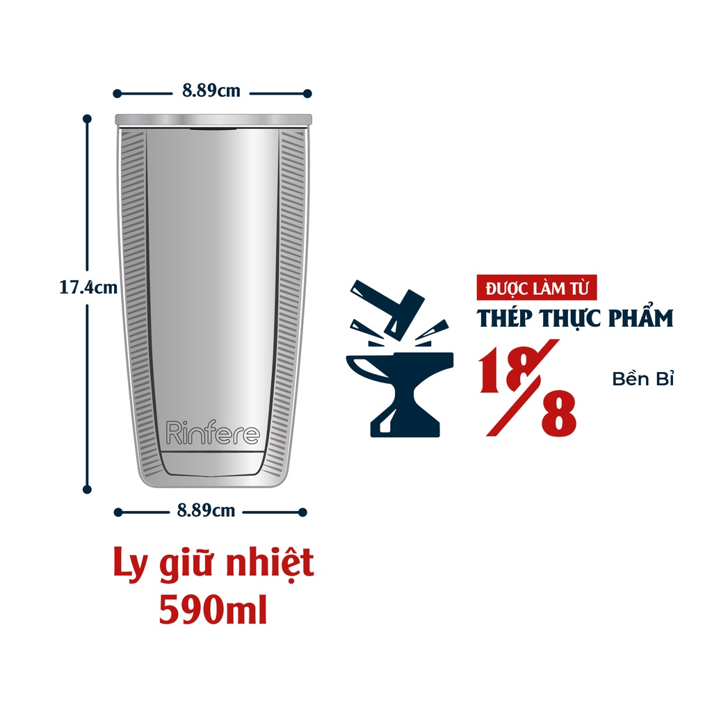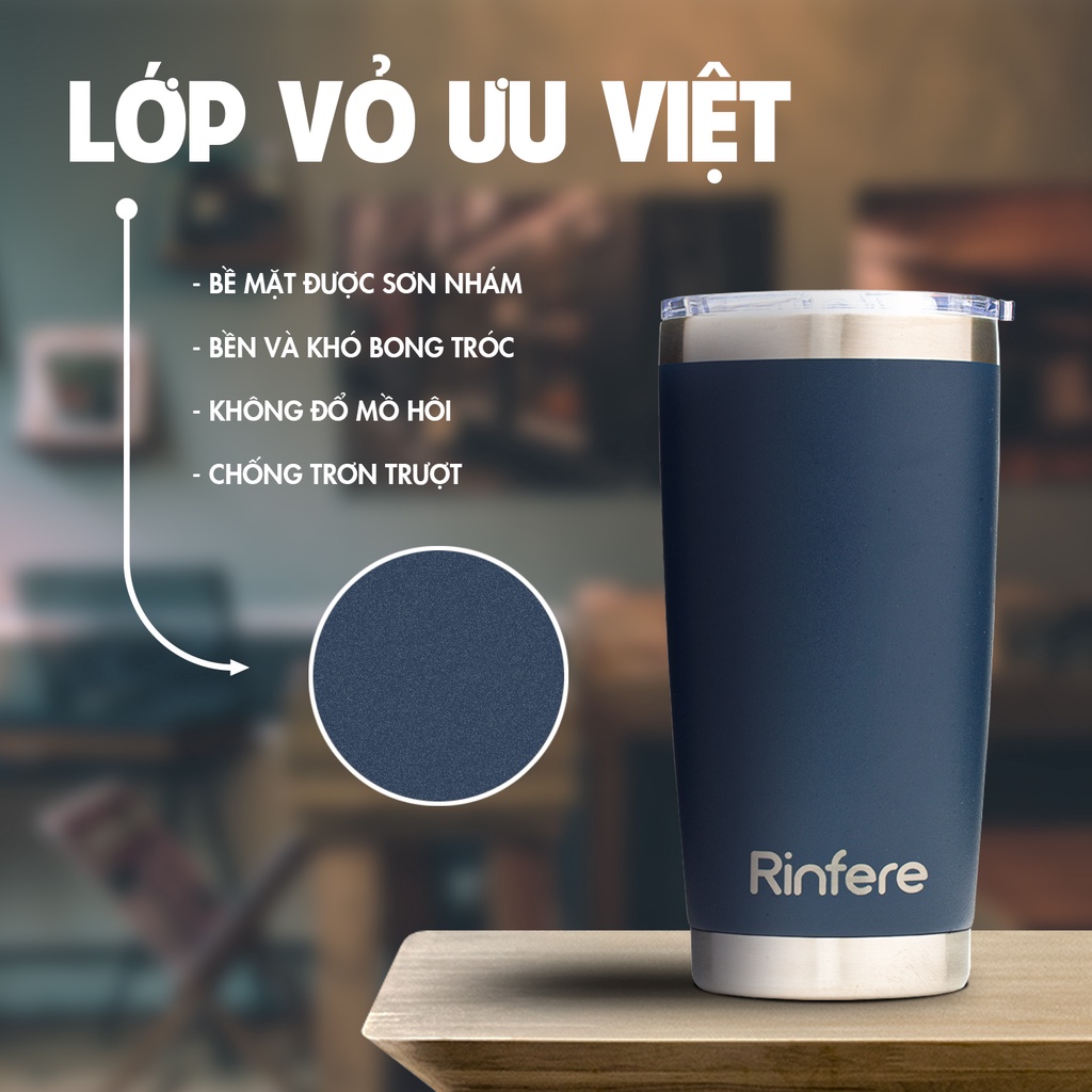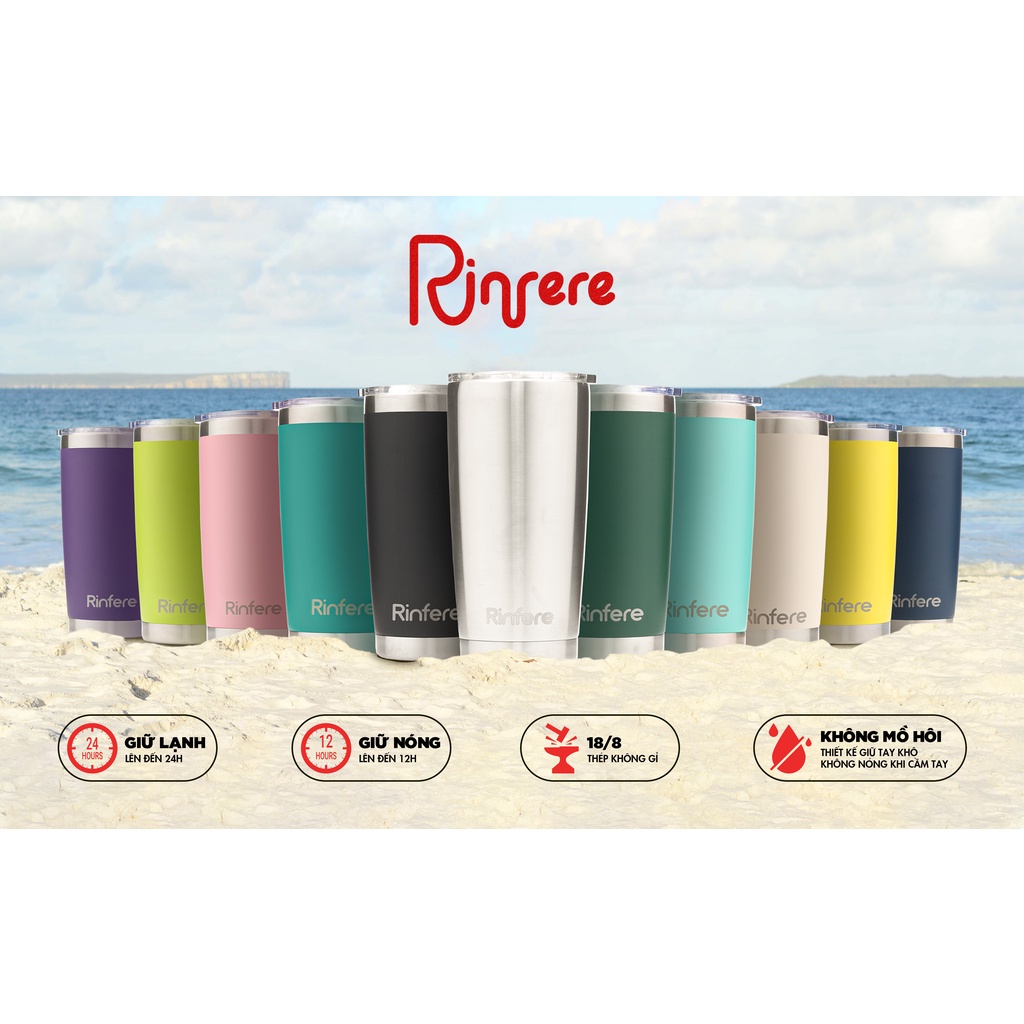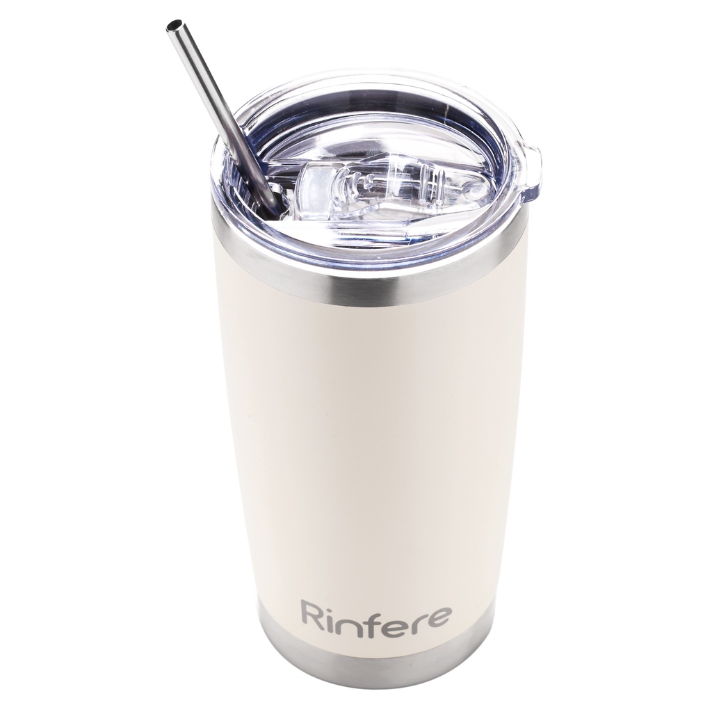 Giới thiệu Ly Giữ Nhiệt Nắp Trượt Chống Tràn Rinfere - Tặng Kèm Ống Hút Không Gỉ, Dụng Cụ Vệ Sinh Ông Hút (590ml)