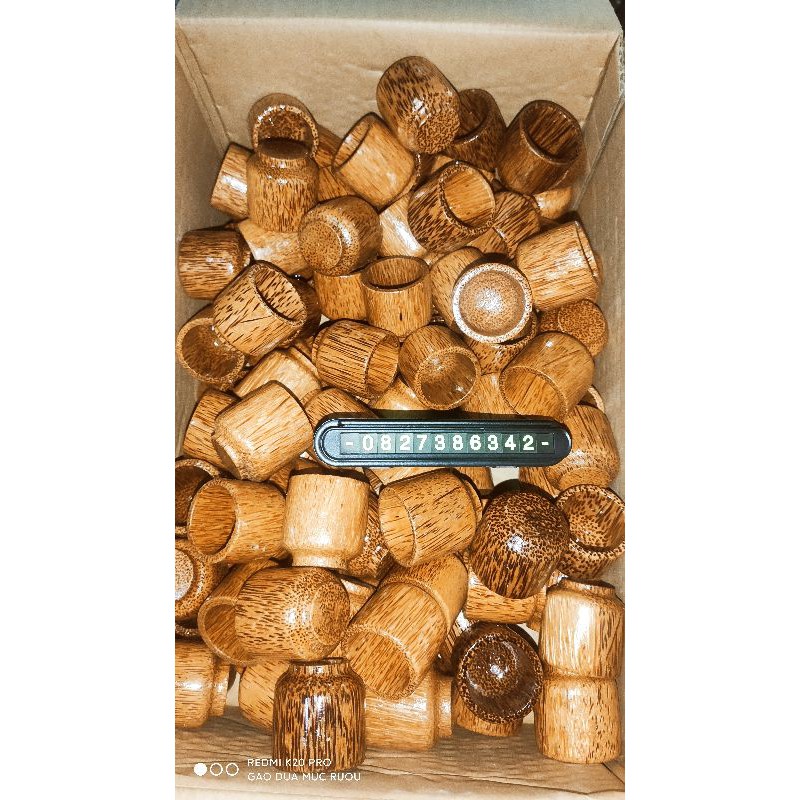 Ly gỗ dừa dùng trên bàn tiệc, mỗi ly gỗ tương đương với 1 ly rượu.Có 2 kích thước: