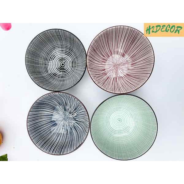 Giới thiệu ❌THANH LÝ HÀNG LỖI❌ Bát hoạ tiết kẻ sọc phong cách Nhật, bát ăn cơm đáng yêu - H2DECOR