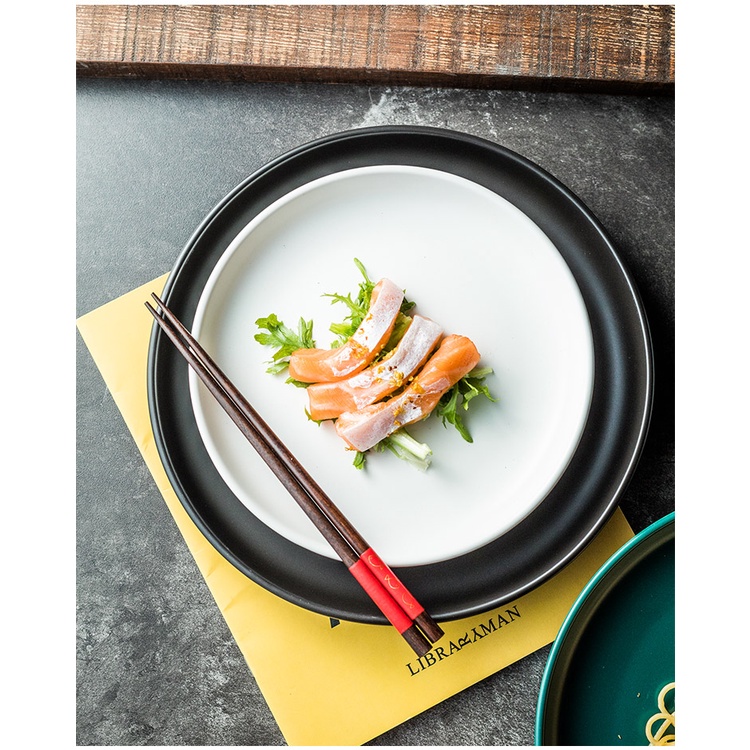 Đĩa sứ trang trí cực đẹp, với thiết kế đơn giản, sang trọng, giúp đồ ăn được chụp ra trông nổi bật hơn