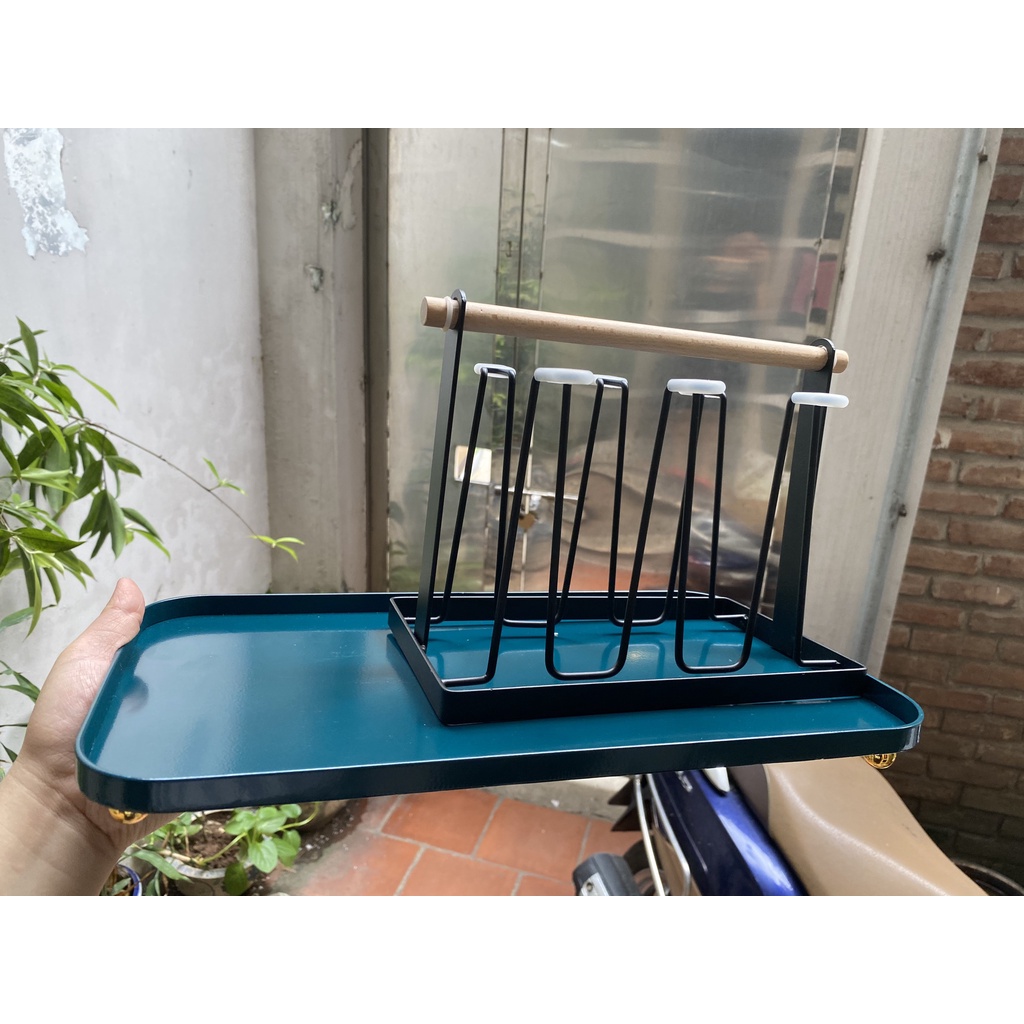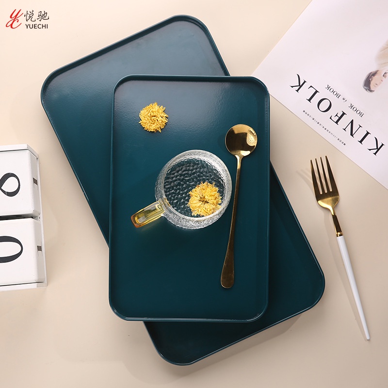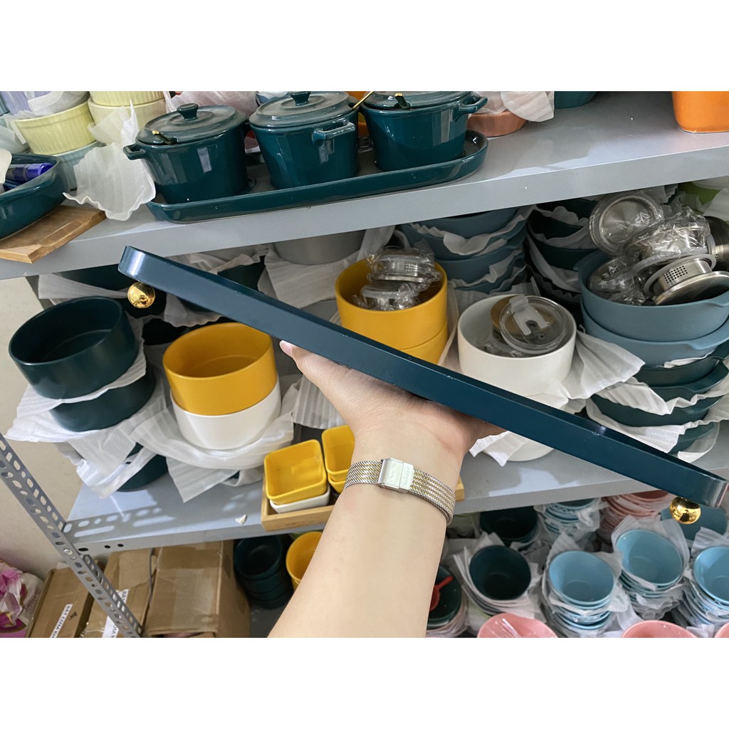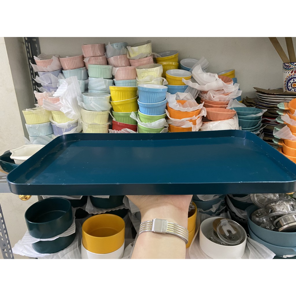 Nhà cửa & Đời sống > Bộ đồ bàn ăn > Dĩa || ❌THANH LÝ HÀNG LỖI❌Khay thép xanh đế bi vàng, hàng trưng bày lỗi nhẹ - Khay Decor phong cách Bắc ÂuCòn hàng