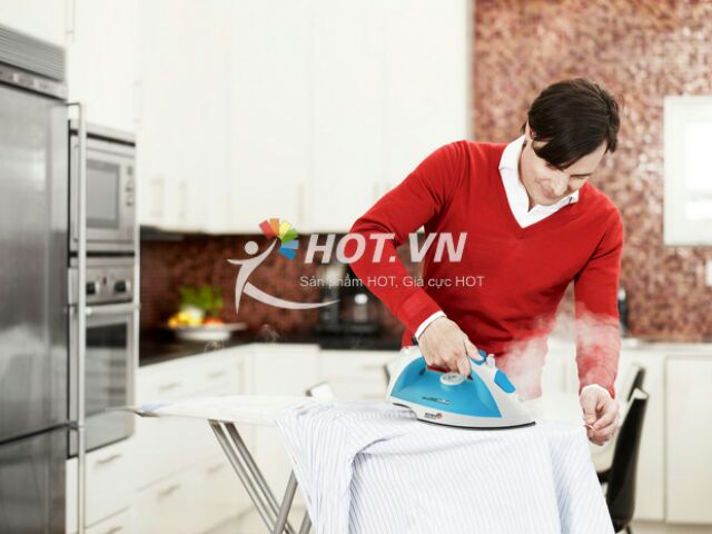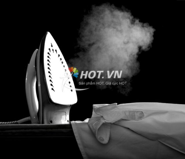 Phun hơi: Nước được đun nóng bởi mặt đế bàn ủi, sinh ra hơi liên tục giữ ẩm cho bề mặt vải, giúp quần áo khỏi bị mòn, phai màu, ngoài ra áp suất từ luồng hơi nóng dễ dàng làm phẳng mọi vết nhăn mà không cần đè mạnh. Mức hơi phun ra đạt đến 40g/phút, tiết kiệm công sức, thời gian ủi đồ.
