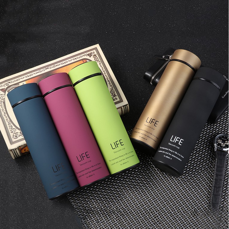 Bình nước giữ nhiệt Life 500ml chất liệu inox 304 cao cấp chống gỉ sét, nắp đậy kín, giữ nhiệt lâu từ 6-12h, phù hợp sử dụng tại văn phòng- Kích thước: 23cm x 6.5cm
