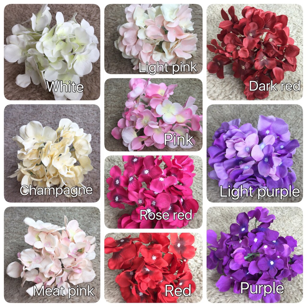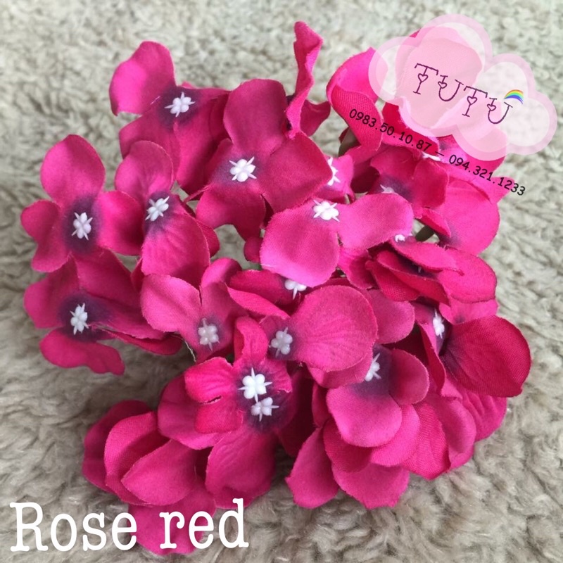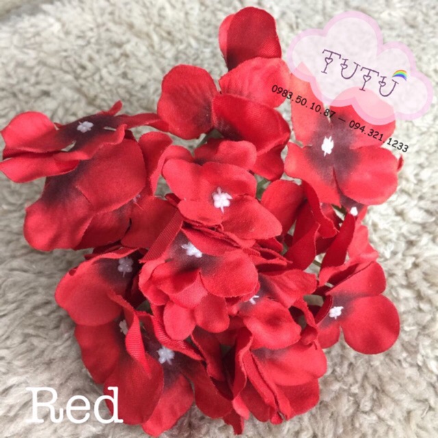 Hoa chùm cẩm tú cầu, chất liệu lụa cao cấp, cánh phun nhung, màu sắc đa dạng, tự nhiên; ứng dụng trong trang trí nhà cửa, sự kiện, phụ kiện may, trang trí váy công chúa, phụ kiện tóc...Có 19 màu với đủ tông để các bạn lựa chọn. 1 chùm 30 cánh size 3-5cm có pha màu. Chùm chỉ có đầu hoa như ảnh, ko kèm cành.