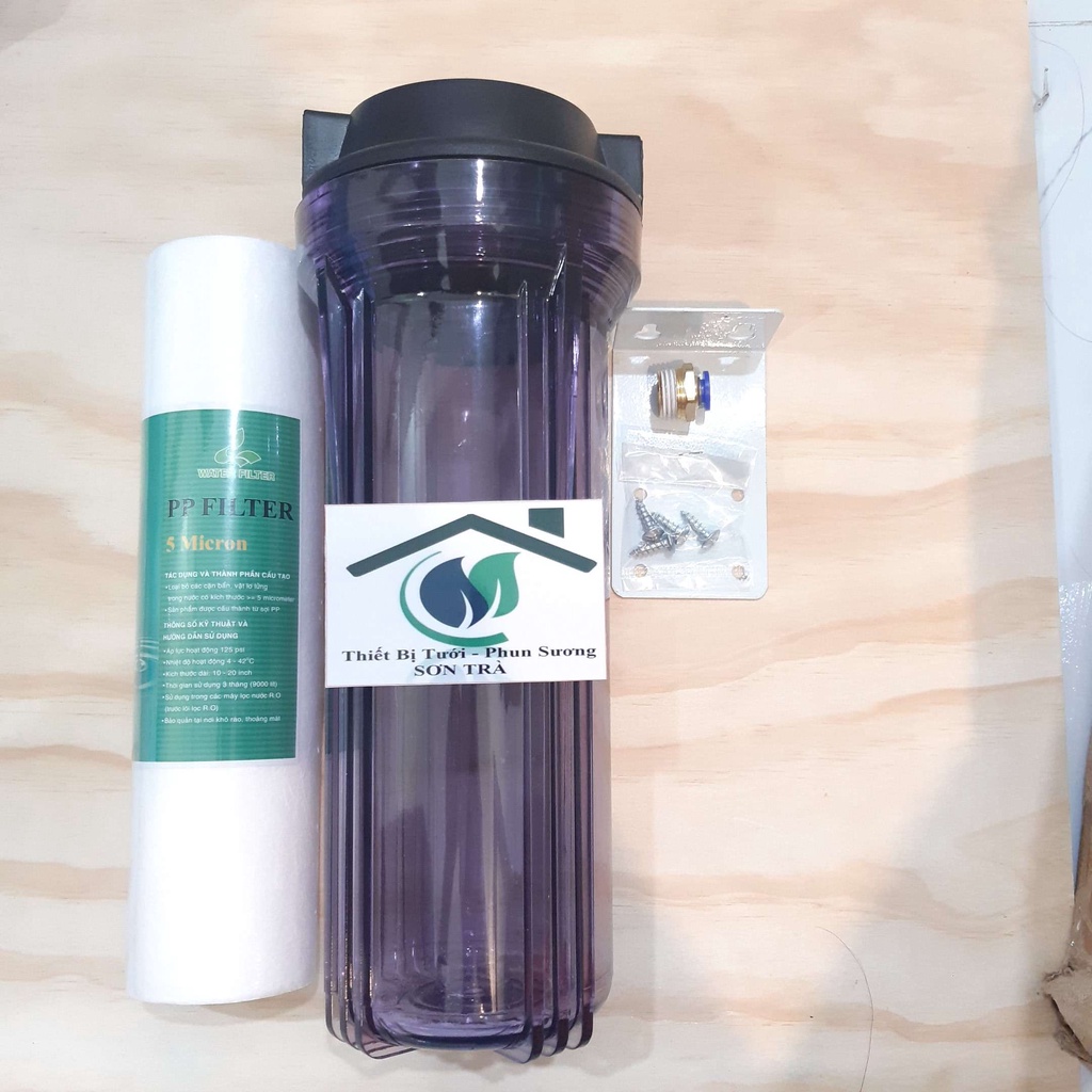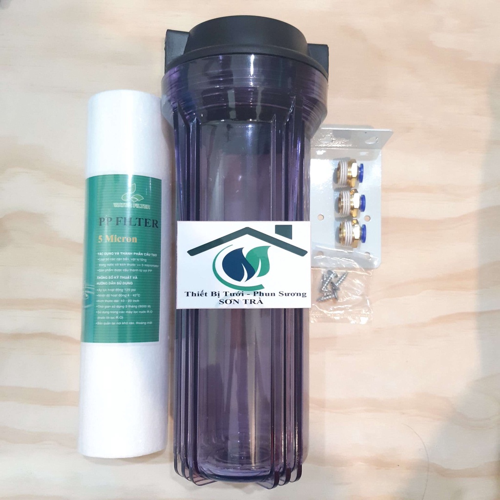 Ly lọc nước máy phun sương có sẵn lõi lọc và ren nối ống 8/10/12mmSản phẩm bao gồm: