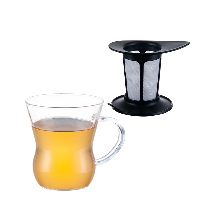 Ly lọc trà với chất liệu thủy tinh trong suốt, chịu nhiệt tốt (120 độ C). Lưới lọc tiện dùng pha trà. Thiết kế nắp thông minh, vừa dùng để đậy vừa làm đế lót cho lưới lọc khi pha xong.