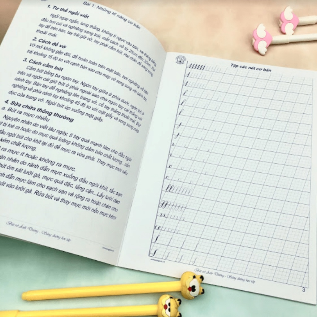 Giới thiệu Vở ô ly luyện viết chữ nghiêng Ánh Dương có mẫu chữ nét thanh đậm chuẩn cao cấp