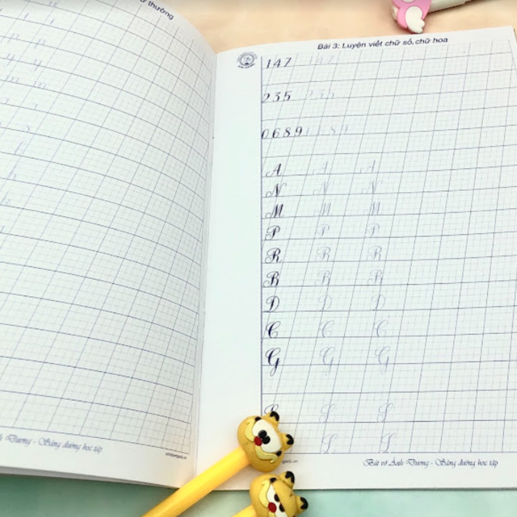 Vở ô ly luyện viết chữ nghiêng Ánh Dương có mẫu chữ nét thanh đậm chuẩn cao cấp