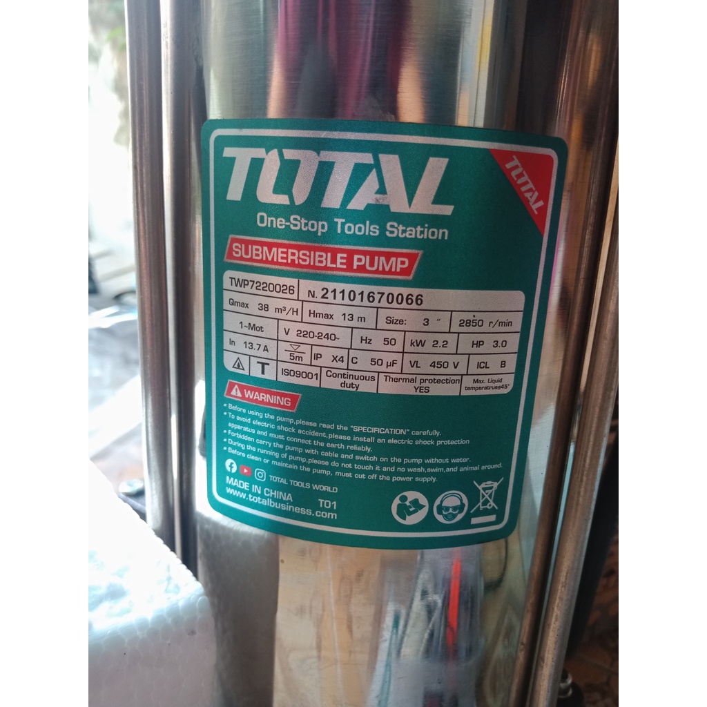 Nhà cửa & Đời sống > Dụng cụ & Thiết bị tiện ích > Máy bơm nước & phụ kiện || [THANH LÝ] MÁY BƠM CHÌM NƯỚC THẢI TOTAL TWP722001 - BƠM CHÌM CÓ PHAO 3HP TOTAL [RẺ] MÁY BƠM CHÌM TỰ ĐỘNGCòn hàng