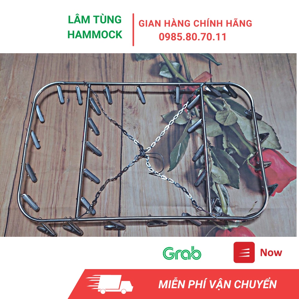 Móc chùm vuông inox gồm 20 kẹp kích thước 50×30 cm.