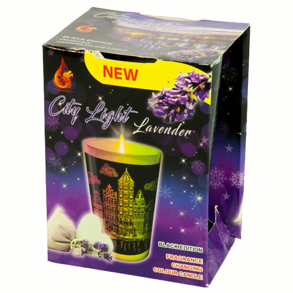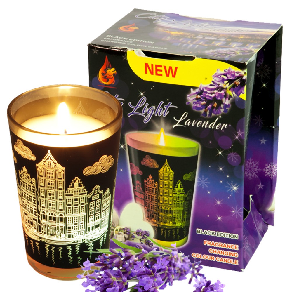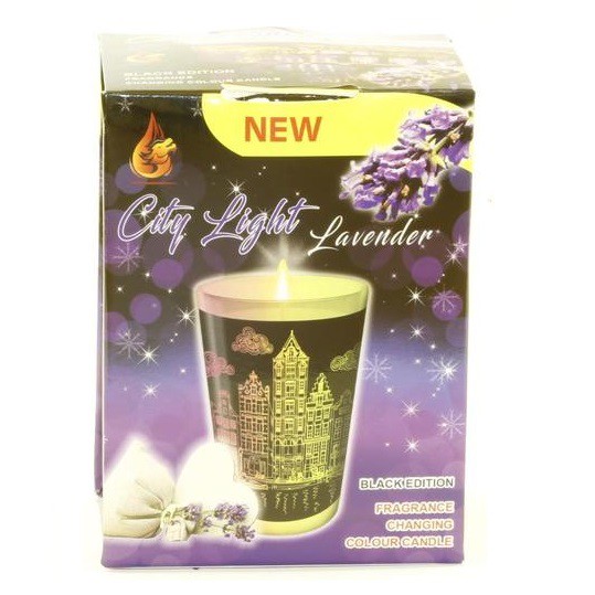 Nhà cửa & Đời sống > Trang trí nhà cửa > Nến & đồ đựng nến || Ly nến thơm đổi màu City Light Lavender Golden Dragon GOD0917 140gCòn hàng