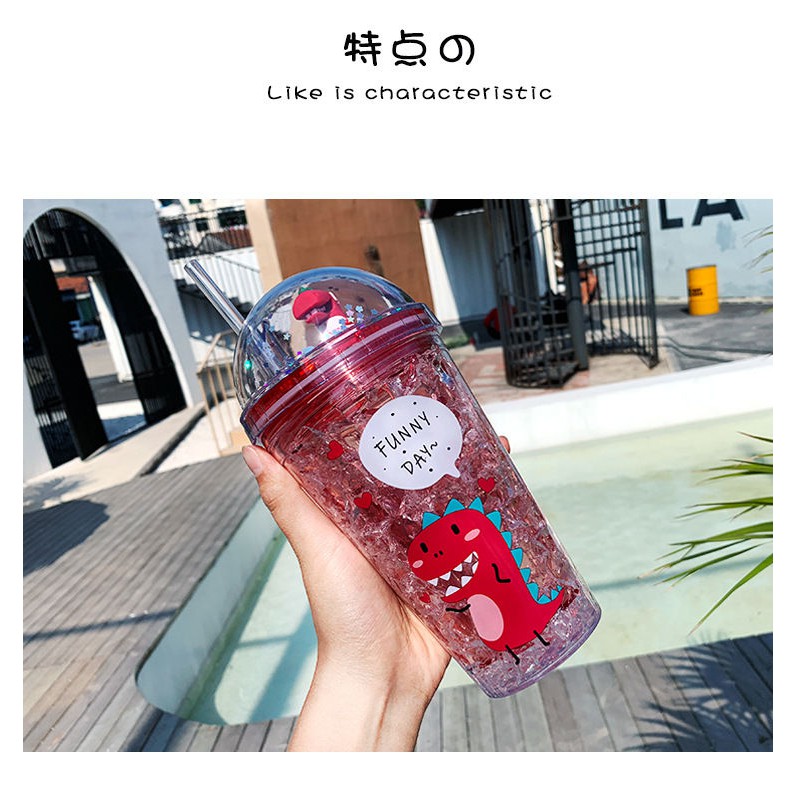 Giới thiệu Ly nước giữ nhiệt KHỦNG LONG 3D cute (kèm ống hút) - Bình đựng nước giữ lạnh nhũ kim tuyến 3D hình khủng long