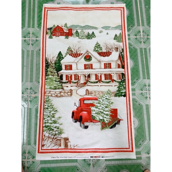 Shop làm đơn tranh vải cho khách xong còn dư mấy pa Giáng sinh như hình.Các bạn mua về tự may thành tranh vải treo tường, tấm trải bàn rất đẹp. Chỉ cần bỏ chút công sức may bo 4 cạnh là xong nha