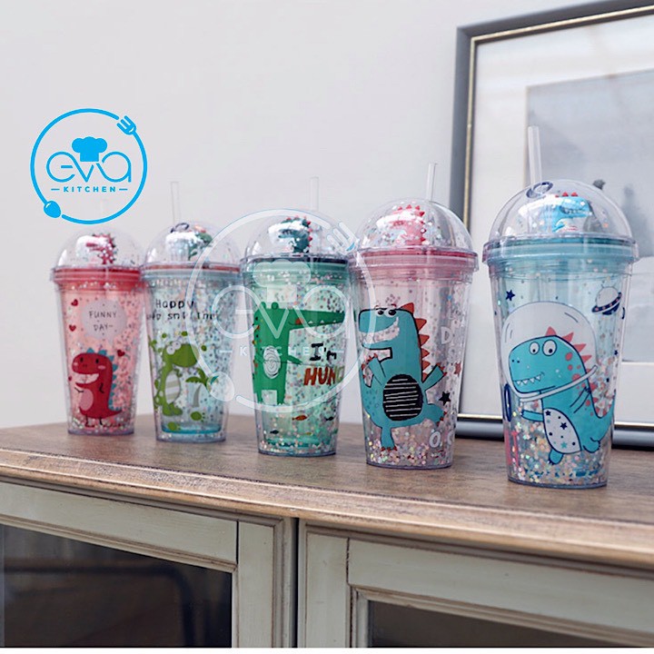 - Sản phẩm gồm : 1 ly nhựa 2 lớp khủng long nhũ kim tuyến cute