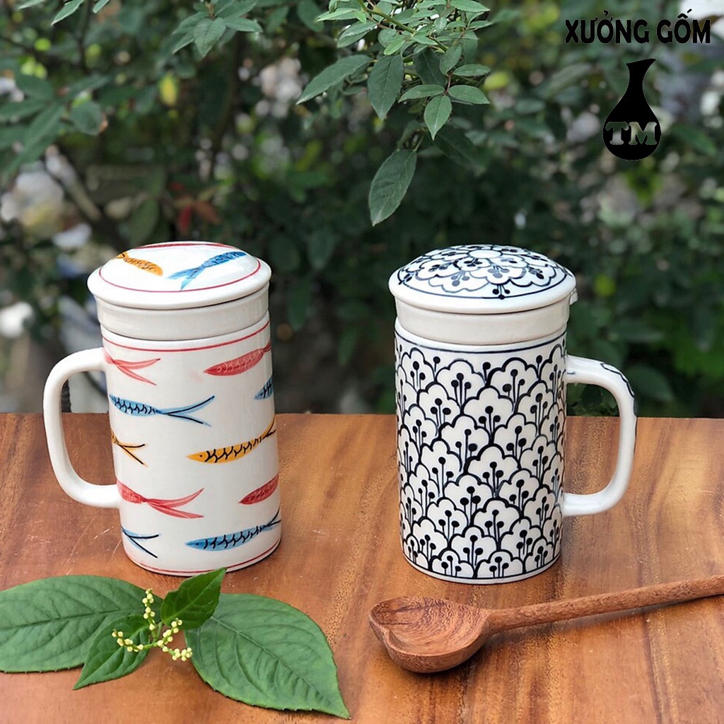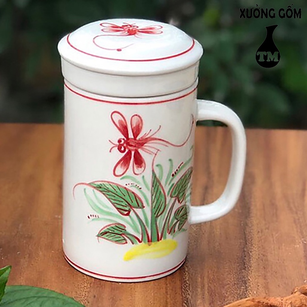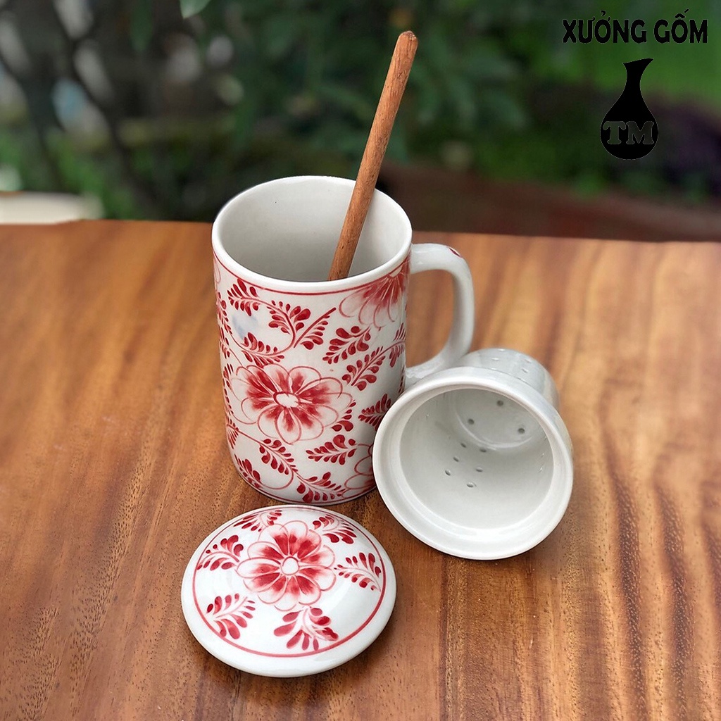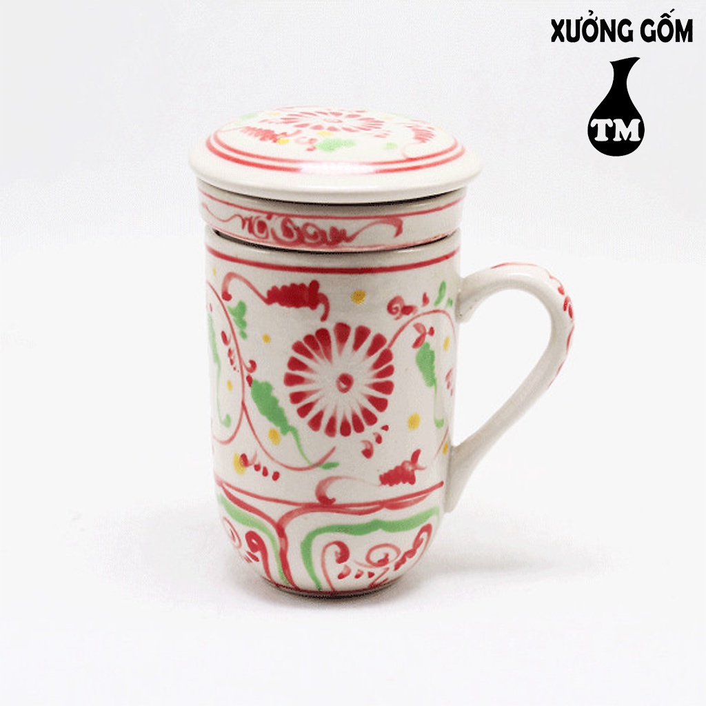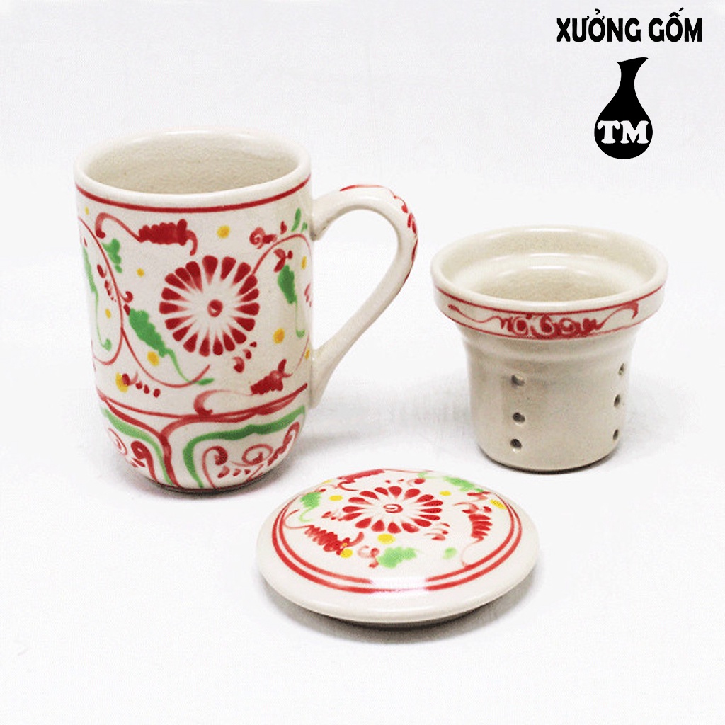 Ly pha trà Cốc lọc trà gốm hoa văn Xưởng Gốm TM Bát Tràng