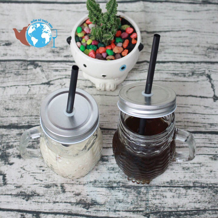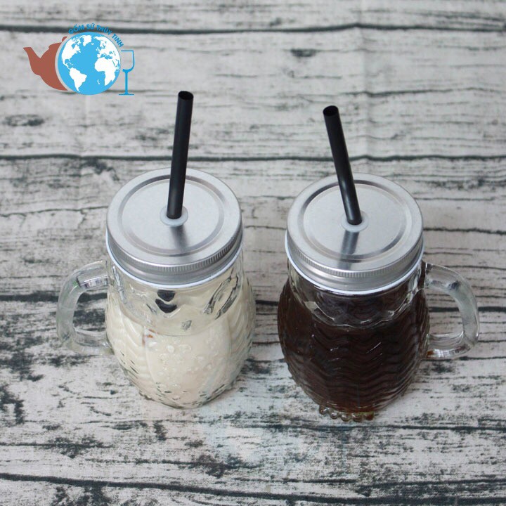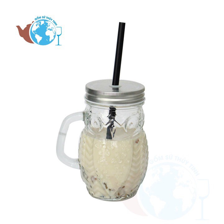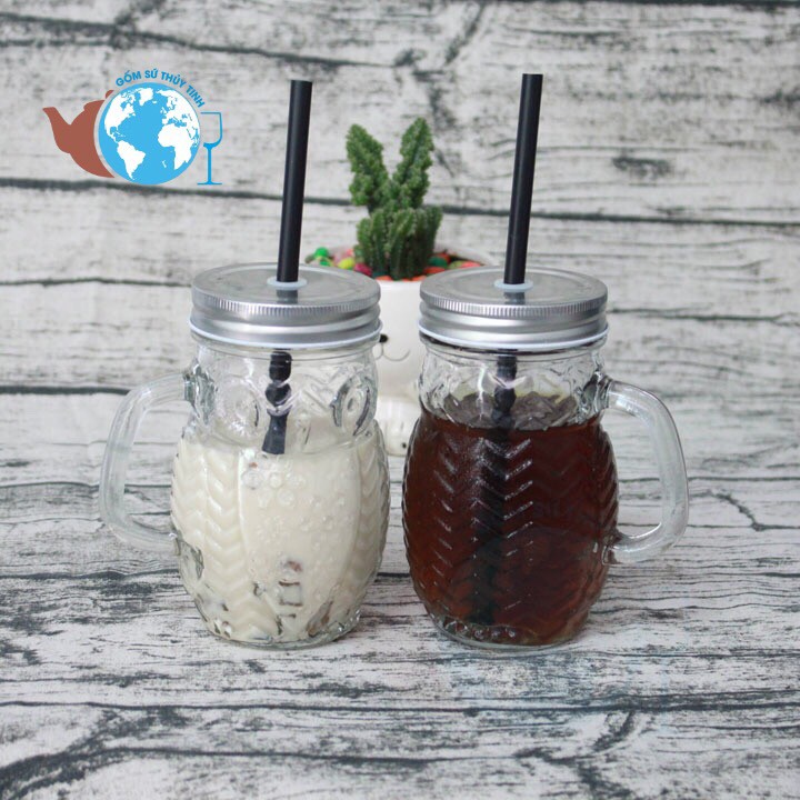 Ly quai thủy tinh con cú 350ml nắp thiếc cực kỳ nghệ thuật là loại ly thủy tinh dành cho các quán trà sữa, sinh tố và đặc biệt thích hợp với các bạn tuổi teen.