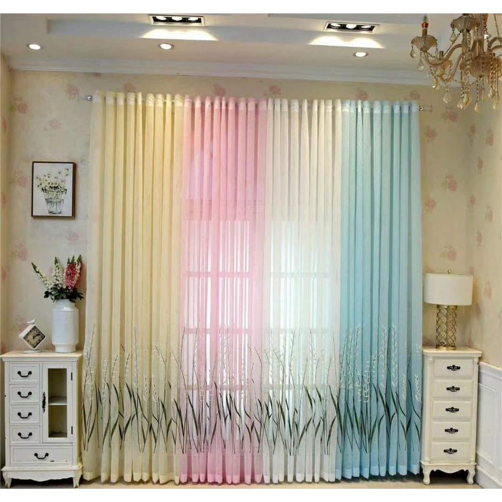 Giới thiệu thanh lý rèm voan hoa màu xanh 3m cao 2m70 trẻ trung và sang chảnh