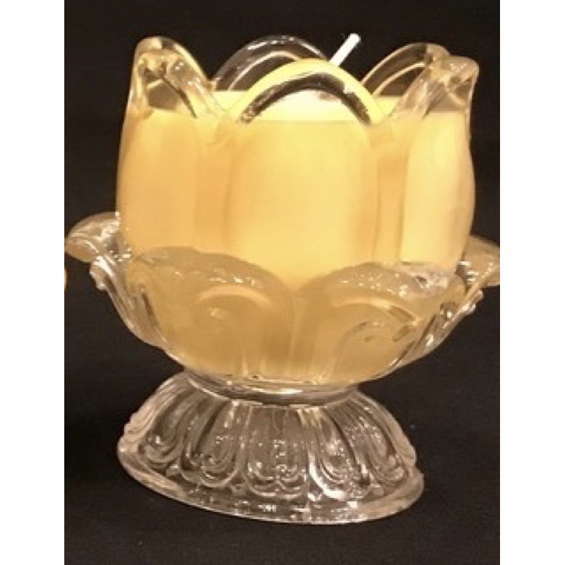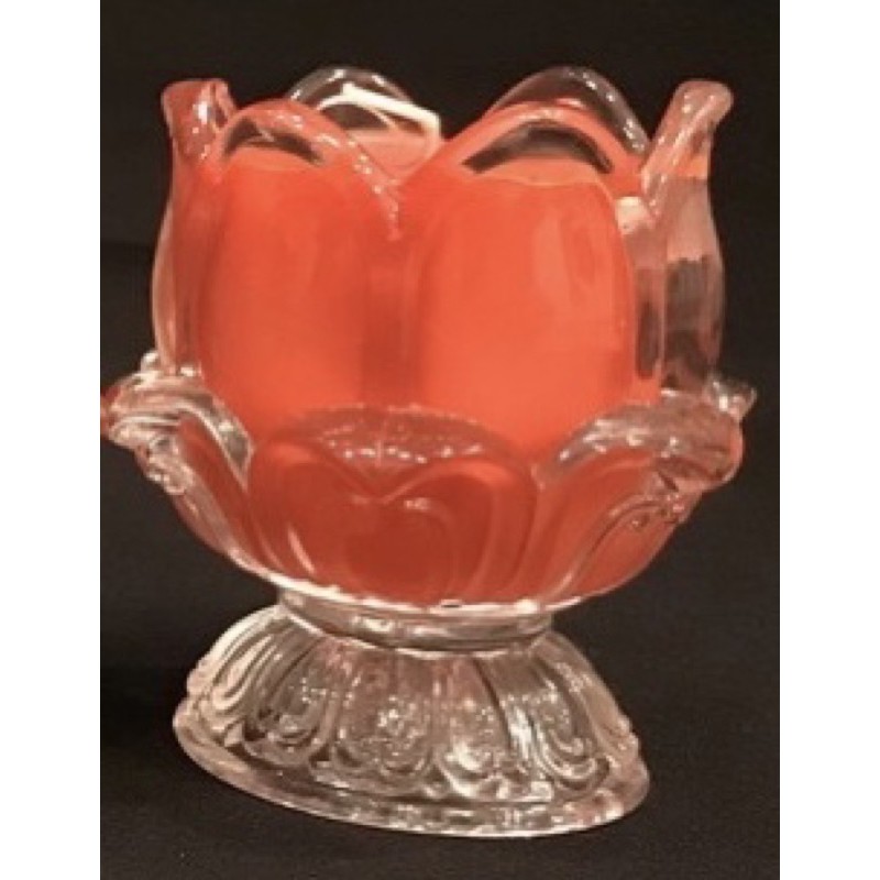 •⭐️ Ngoài ra, với lý thủy tinh hình hoa sen này sau khi sử dụng, ta có thể tái sử sụng như một chân tealight đặt trên bàn thờ không kém phần trang nghiêm.