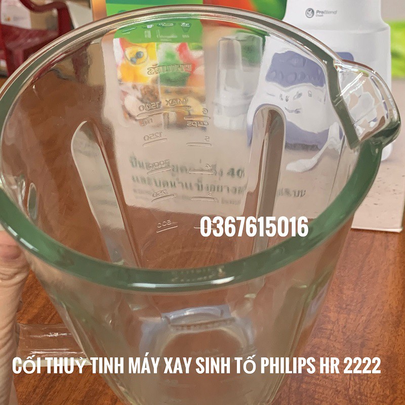 Ly sinh tố - cối lớn không dao không nắp máy xay philips Hr2222 bằng thủy tinh hàng tách bộ