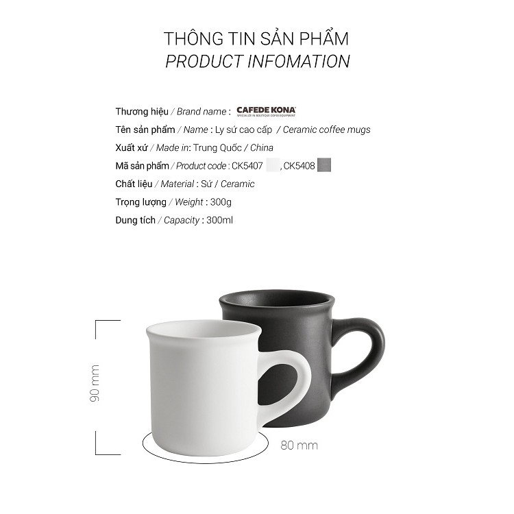 Tên sản phẩm: Ly sứ cà phê cao cấp Cafede Kona 300ml- Đơn vị nhập khẩu: CÔNG TY TNHH CÀ PHÊ VOLCANO