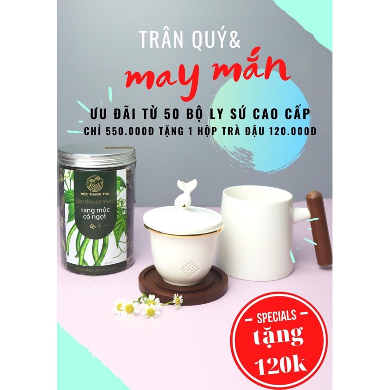 ✨✨✨ Ưu đãi khi mua 1 Ly sứ nắp cá được tặng 1 hủ Trà đậu rang mộc - Cỏ ngọt 500g (120,000) ✨✨✨Ly Sứ Nhật Có Lõi Lọc - Quai Cầm Và Đế Lót Gỗ - Quai Nắp Hình Cá