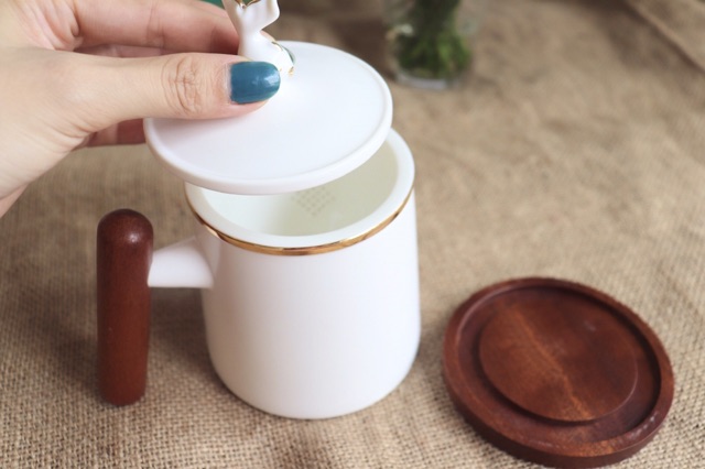 Giới thiệu Ly Sứ Nhật Có Lõi Lọc - Quai Cầm Và Đế Lót Gỗ - Quai Nắp Hình Cá