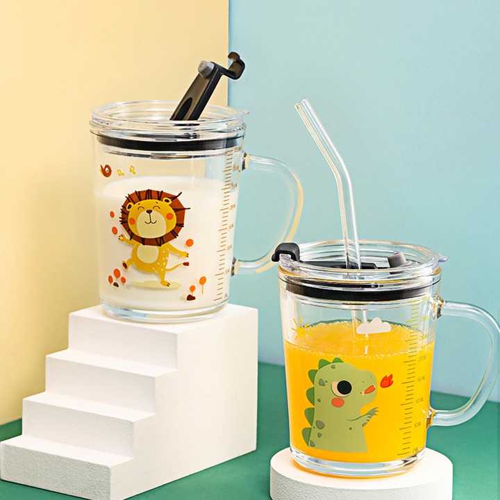 Giới thiệu Ly Thuỷ Tinh Chia Vạch Chia Mực Nước Có Nắp Chống Đổ ( Tặng Kèm Ống Hút Silicon )