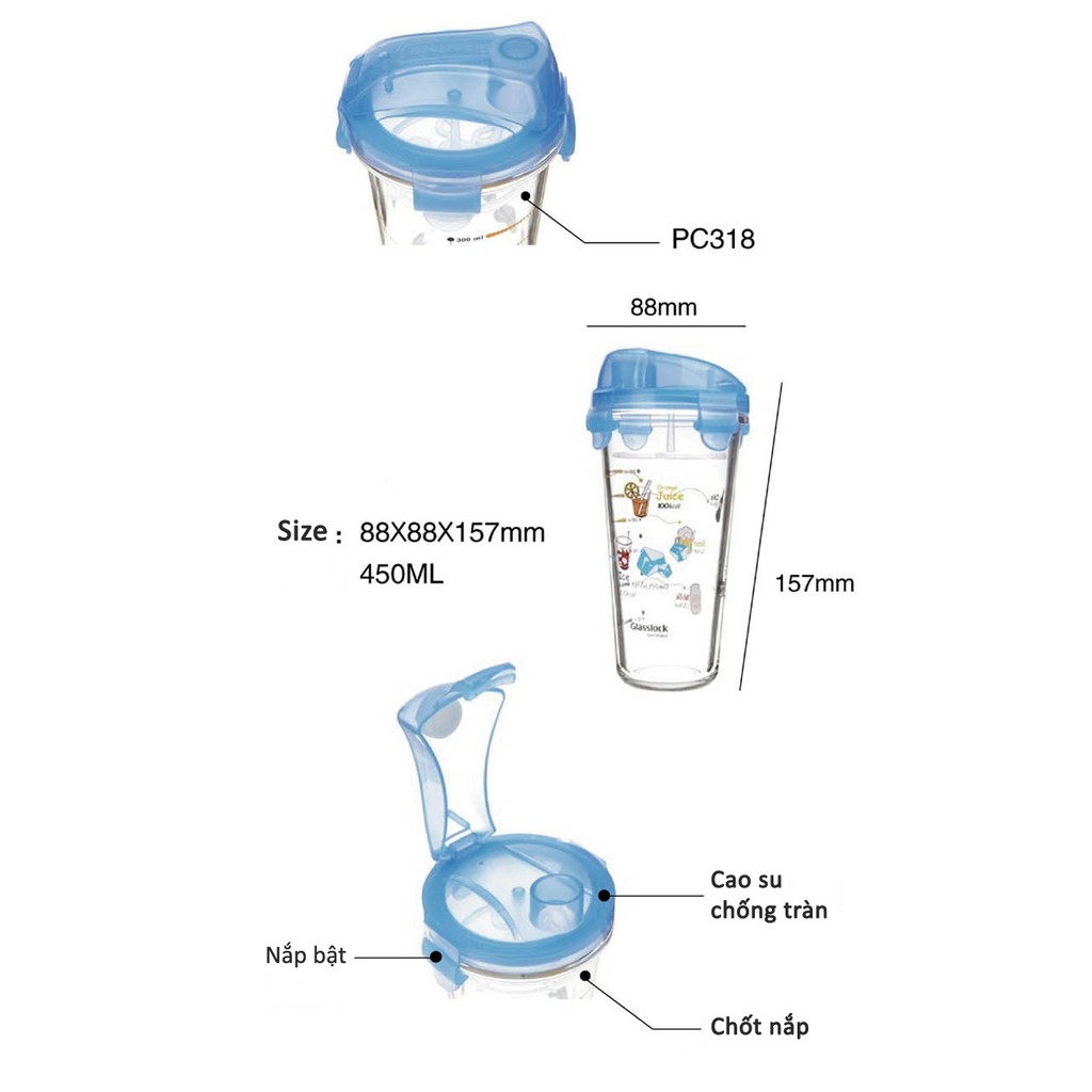 Chất liệu : Thủy tinh chịu nhiệt cao, nắp nhựa cao cấp