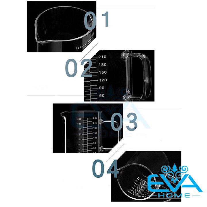 ****Điểm nổi bật của ly thuỷ tinh chia vạch đo lường - Có thể dùng để đo lường khi pha sữa . nấu nướng hay làm bánh , hoặc trong các lãnh vực pha chế khác ... - Cốc đo lường 350 ml được làm từ chất liệu thủy tinh siêu dày, chịu nhiệt tốt.