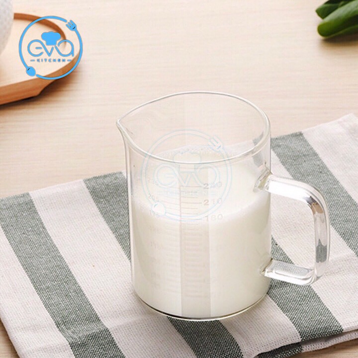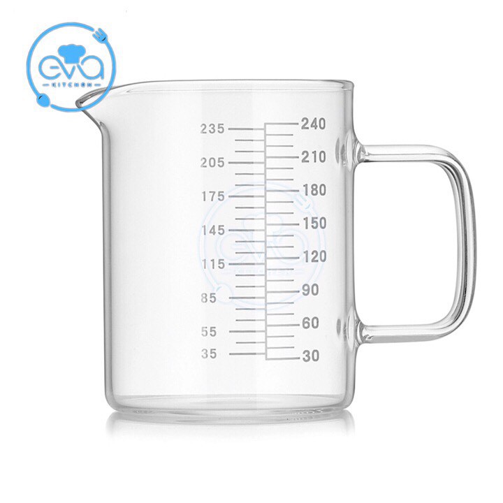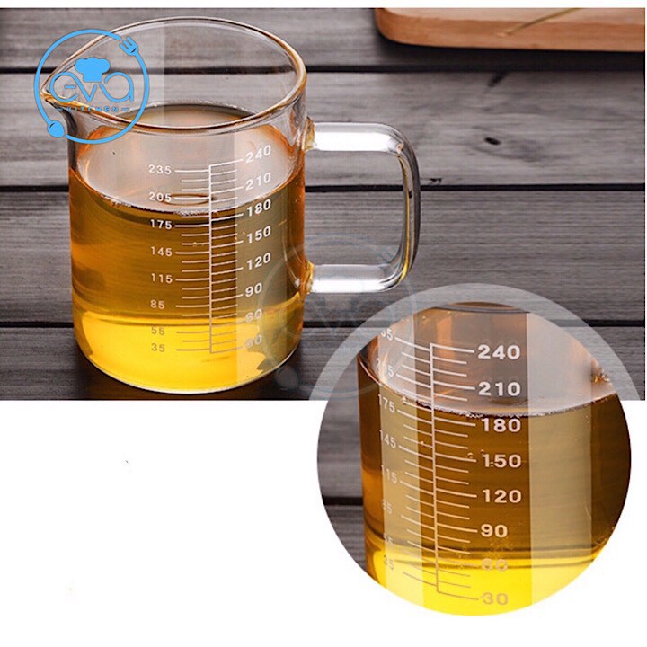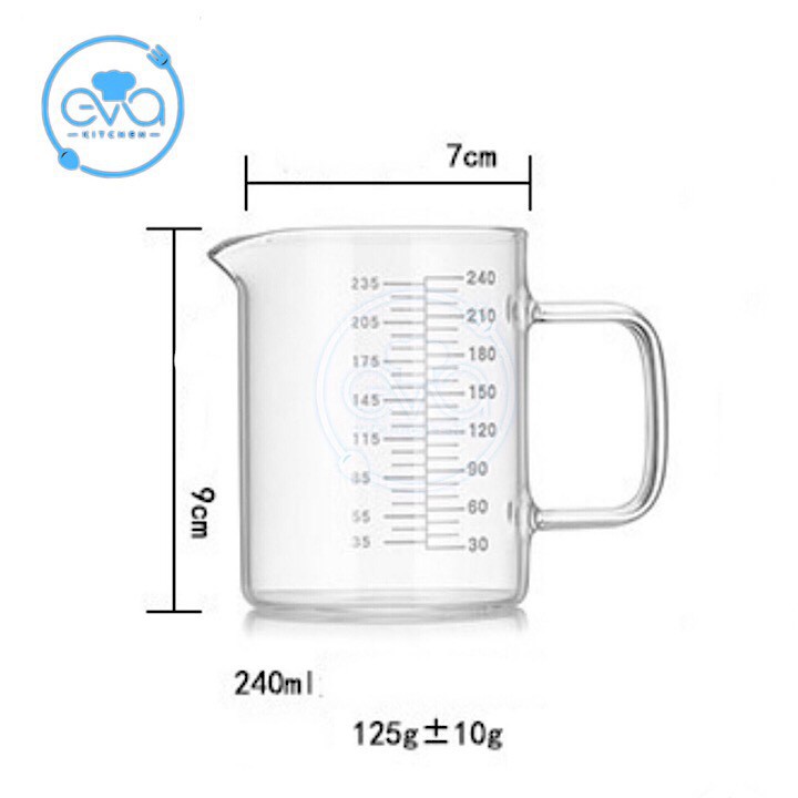 - Cốc đo lường 240 ml được làm từ chất liệu thủy tinh siêu dày, chịu nhiệt tốt.