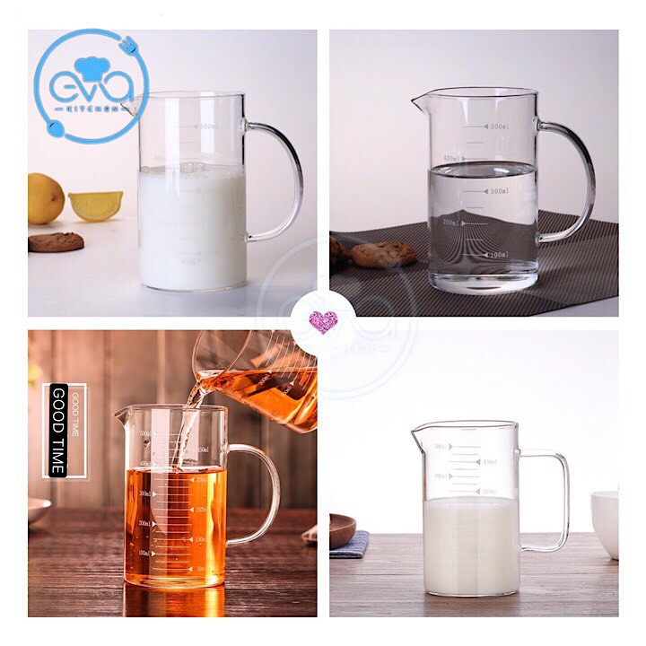 - Cốc đo lường 500 ml được làm từ chất liệu thủy tinh siêu dày, chịu nhiệt tốt.