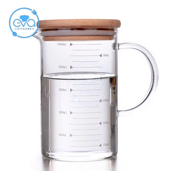 Ly Thuỷ Tinh Chia Vạch Đo Lường 1000 Ml Kèm Nắp Gỗ Đậy